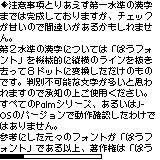 これは特にHandEra330に限定せず、Palmシリーズ全般において標準のフォントとして使えるよう作られた(またしても)オリジナル?の8ドットフォントです。