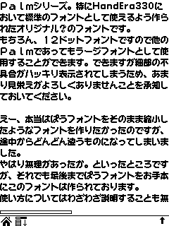 Palmシリーズ。特にHandEra330において標準のフォントとして使えるよう作られたオリジナル?の12ドットフォントです。